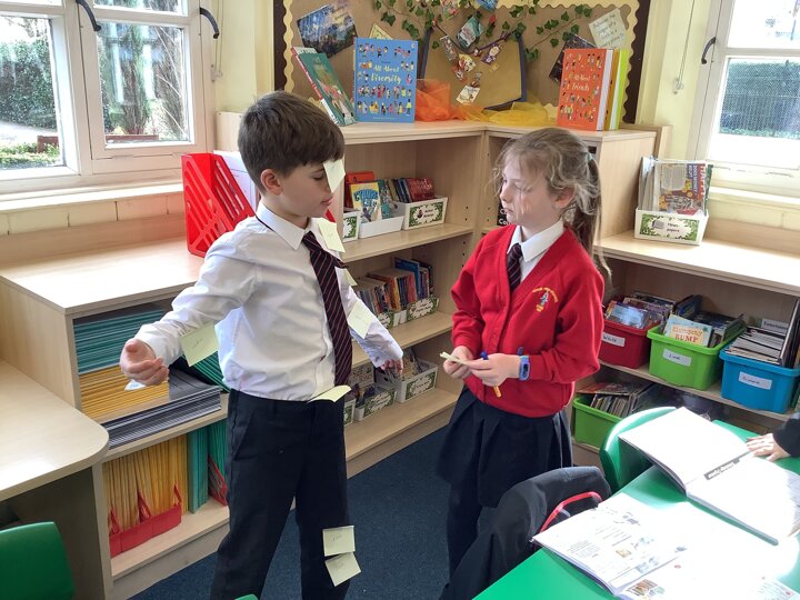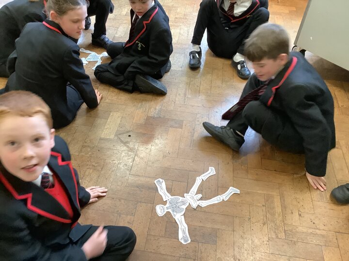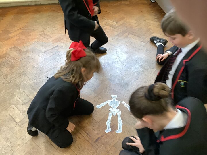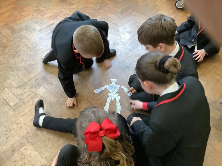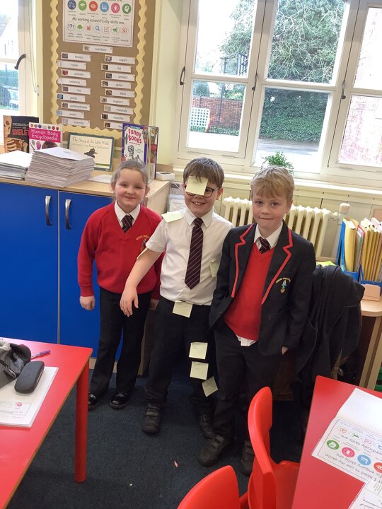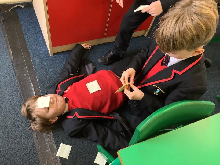 Our enquiry question in science this week was ‘Why do humans need skeletons?’. We used a rubber glove and straws to look at why our bodies need support. We then labelled the bones in our body by post it noting our partners and completing a skeleton relay in pairs. Some great practical science!
