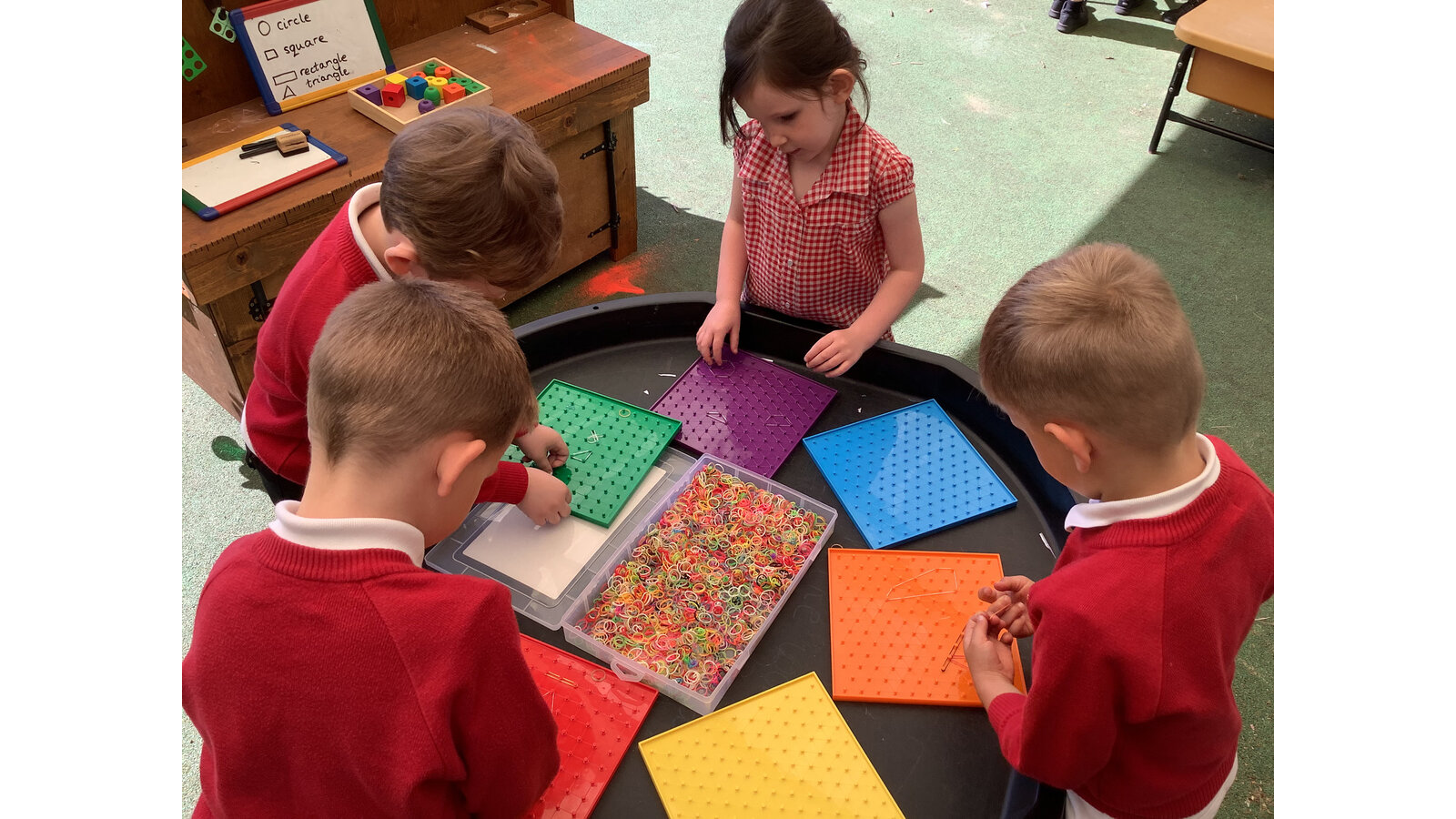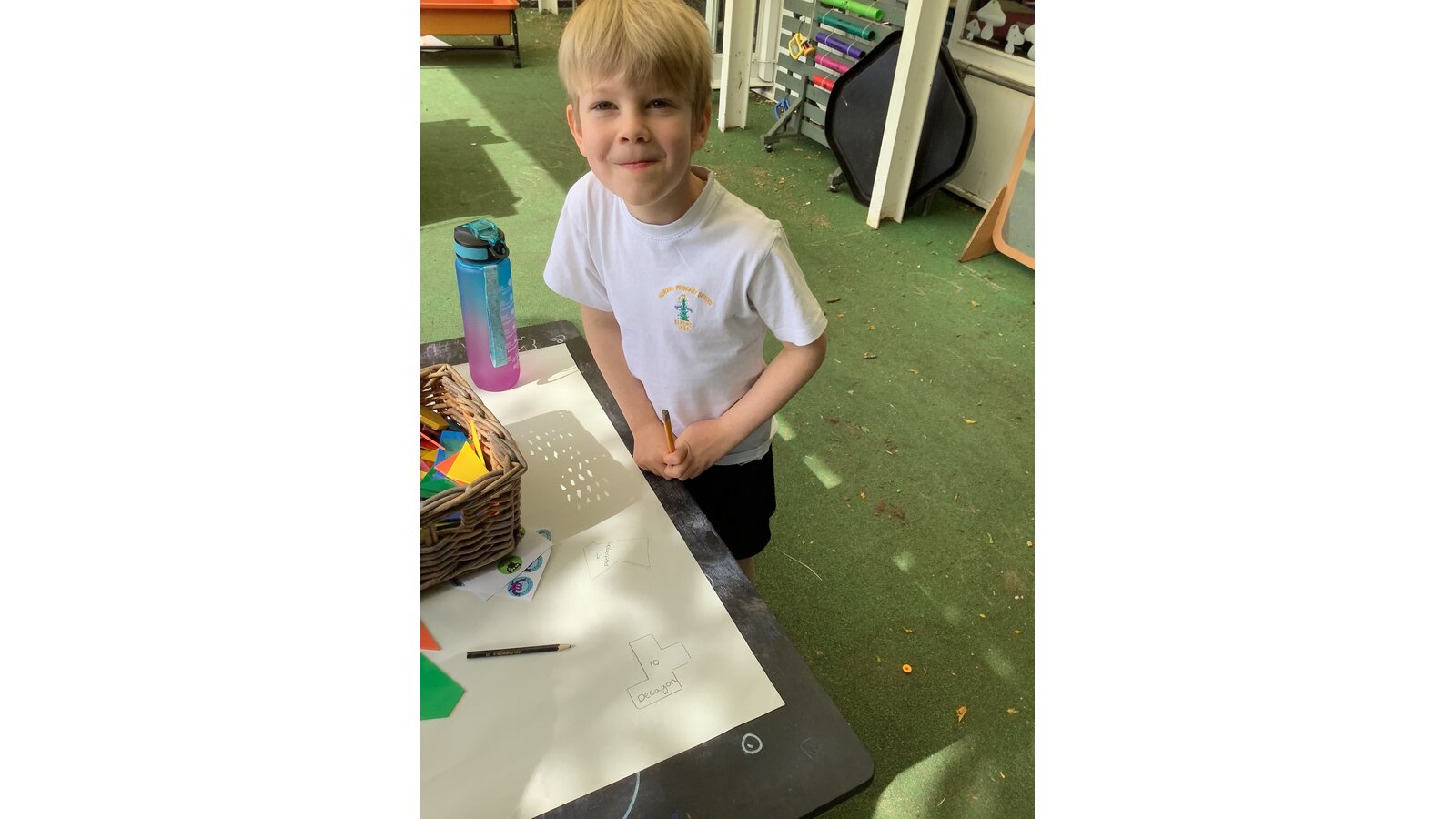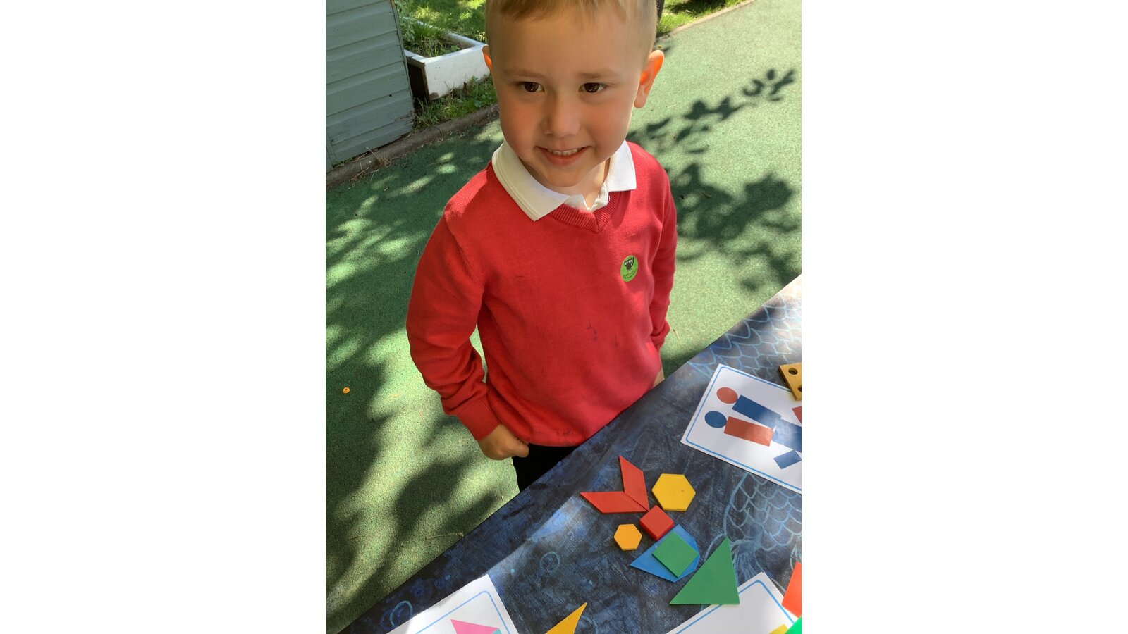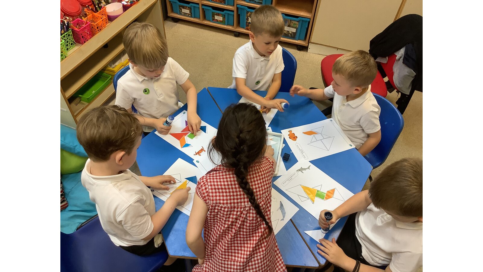 Reception have had a super week exploring 2D shapes. They have identified the number of sides of common 2D shapes, explored shapes that have been rotated and applied their knowledge to make tangram pictures. Fabulous work!