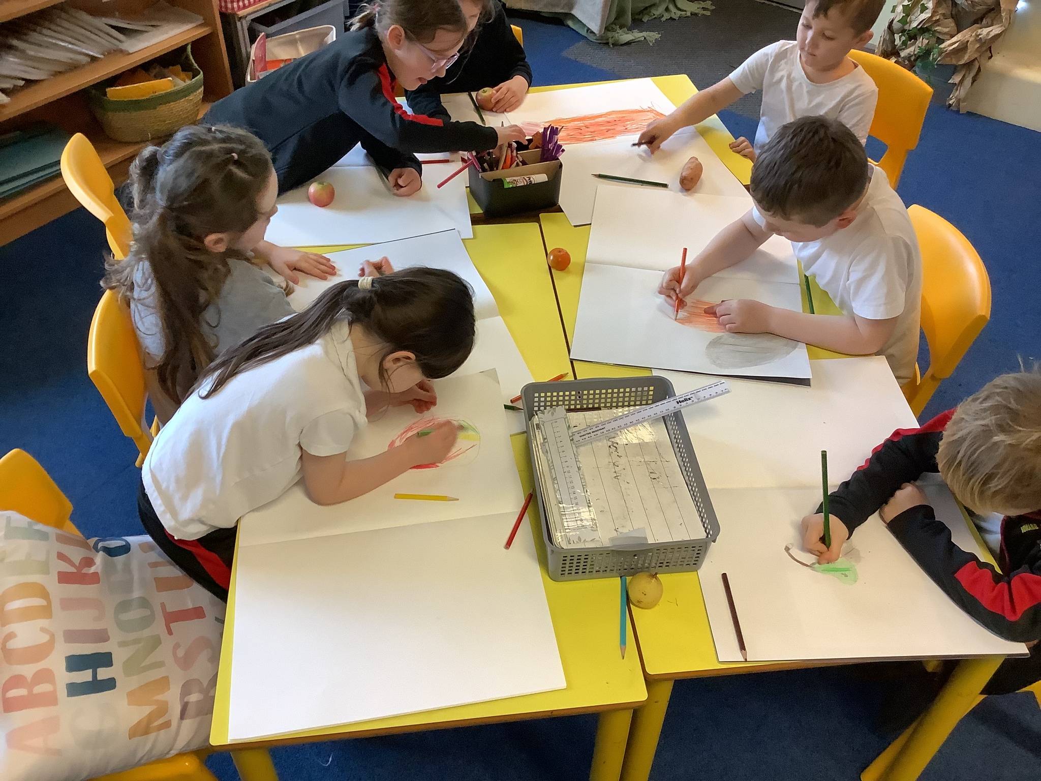 The children have worked hard applying their newly learnt sketching skills on their final art pieces. They showed great care looking at the shapes, textures and shadows during their still life drawing lesson. Wonderful art skills developing!
