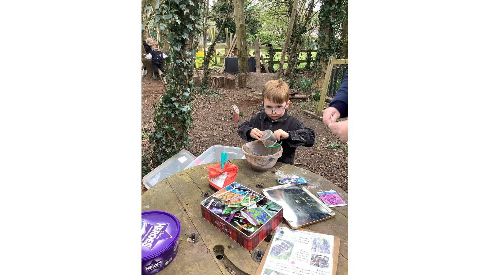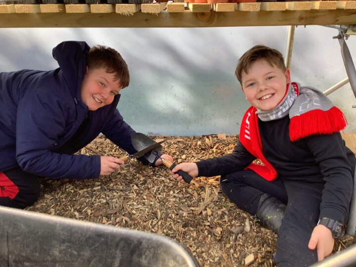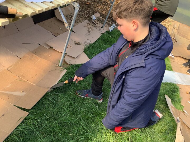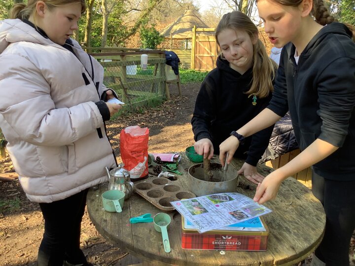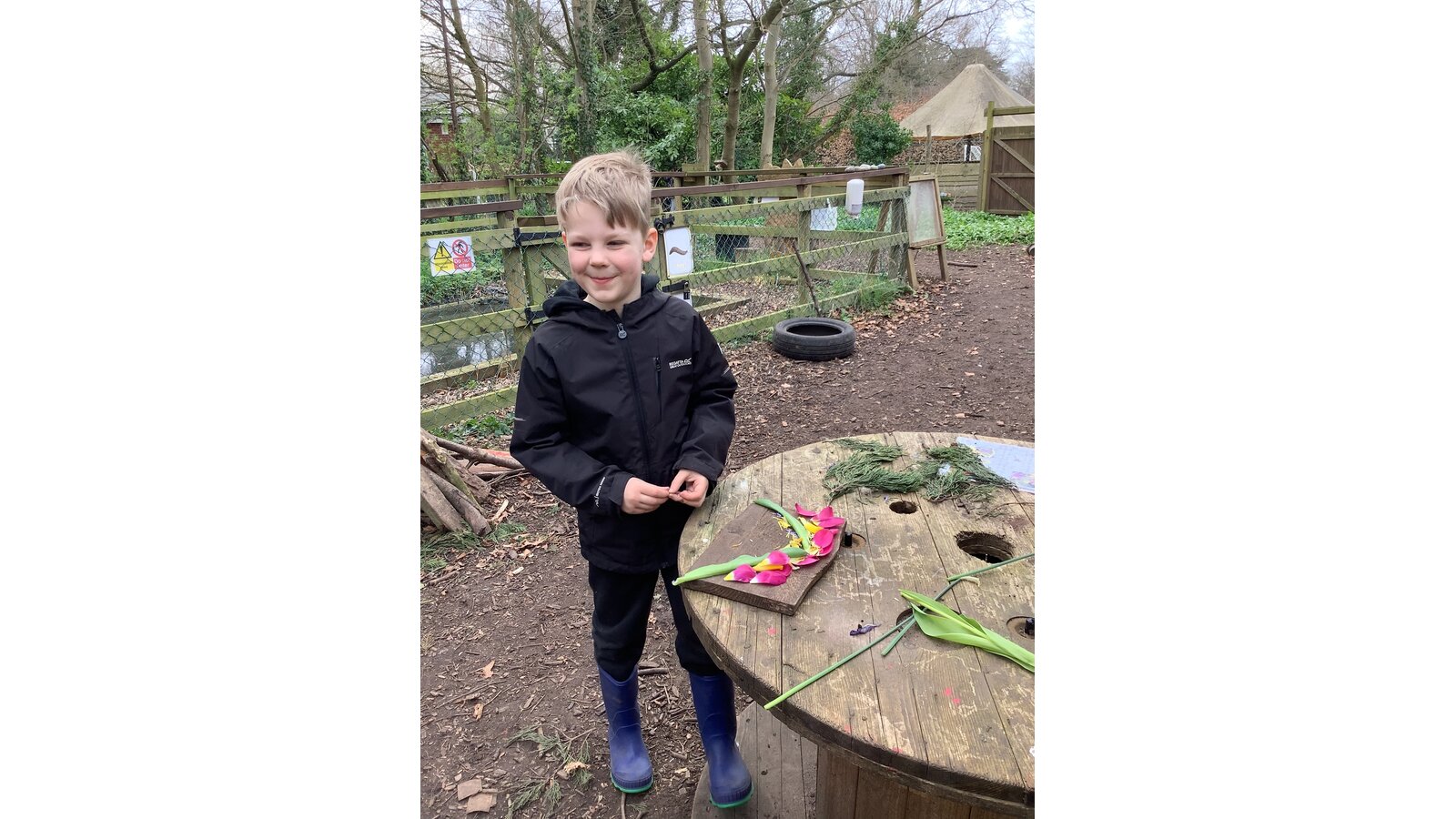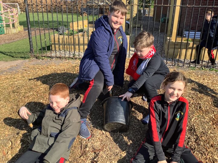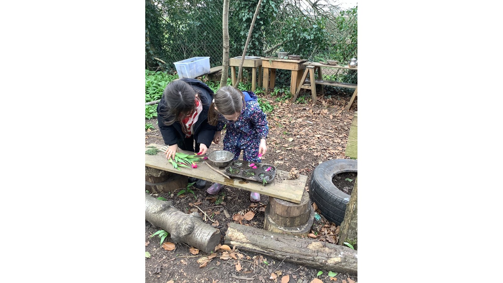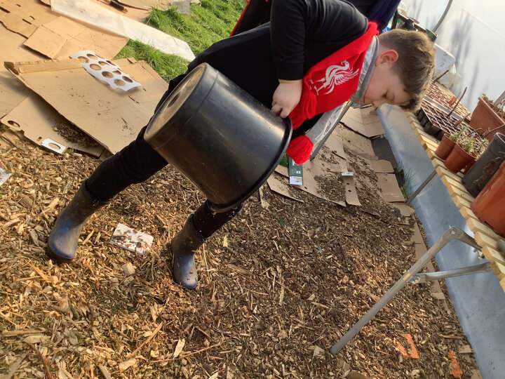 The children have been very busy in Forest this week. They have worked hard in the poly tunnel laying the cardboard and bark for the floor, watering our lovely new willow arch, and tending the beds. They have been making seed bombs and taken part in various craft activities with natural materials. The mud kitchen has been busy with some new spring recipes being perfected and it has been great to see them exploring how to use the resources to make a seesaw, slide and stepping stones.