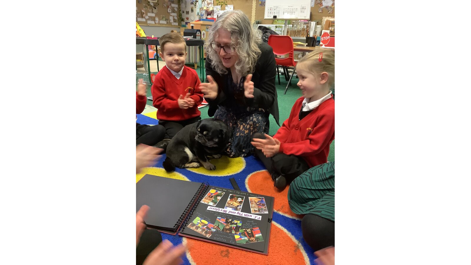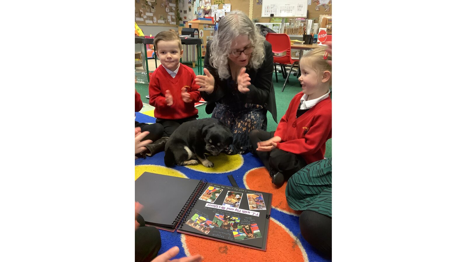 This morning Mrs Gethin and Ralph came into school to collect our travelling tale, ‘Pig the Pug’. We showed them all of the wonderful things we have been doing in Class 1 over the last couple of weeks and gave the special book back to her. We had filled it with lots of photos and pieces of work which we had done with ‘Pig’. We’ve had so much fun!