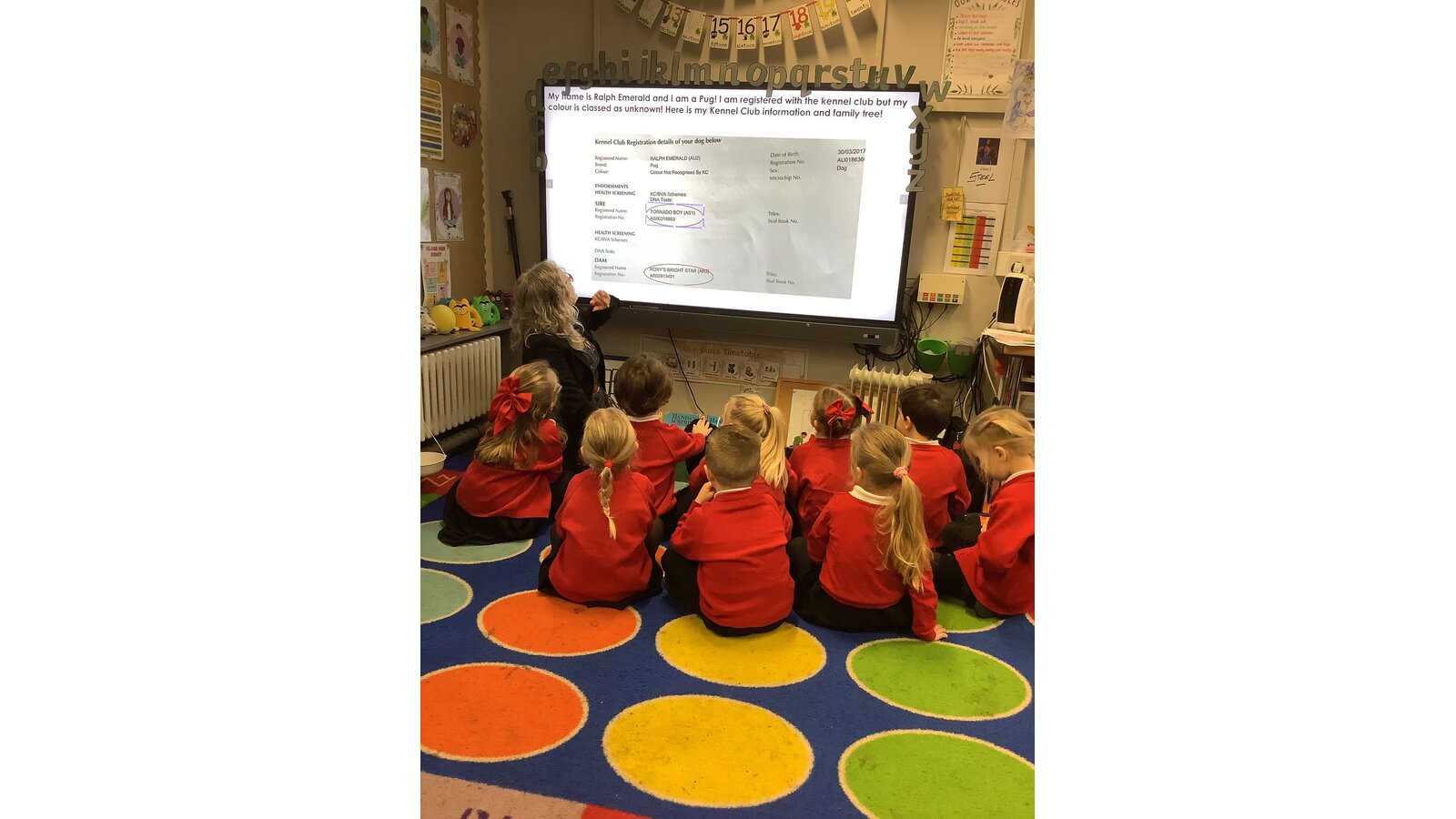 To conclude our fabulous topic, Mrs Gethin shared a PowerPoint full of lots of information about Ralph and how she takes care of him. It was lovely to hear all about Ralph’s life. Thank you Mrs Gethin for a wonderful morning. We hope the next school enjoys learning with ‘Pig the Pug’ as much as we did!